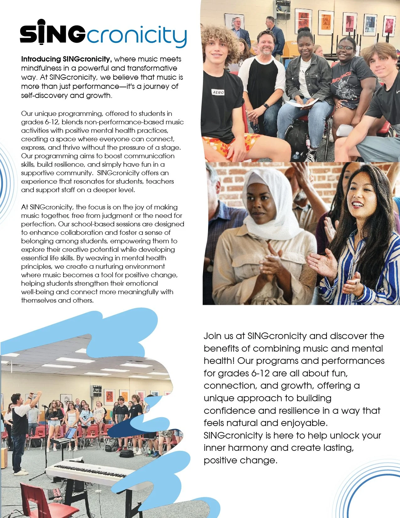 For more information on our program, or to book SINGcronicity educational workshops, please contact Bob Charters at the email address below